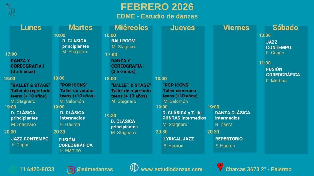 - DANZA CLÁSICA (intermedios y avanzados): Martes, Jueves y Viernes 19hs con Nina Zaera, Marina Stagnaro y Emilia Haurón